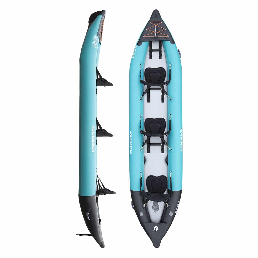 Le Kayak gonflable semi-professionnel Koloa est disponible en version 3 personnes pour une pratique polyvalente en mer, lac et rivière jusqu’en classe III. Conçu avec un fond technique Dropstitch et une étrave moulée, le Koloa offre un confort de navigation exceptionnel dans toutes les conditions. C’est un kayak très stable grâce à sa largeur et ses beaux volumes de gonflage qui apportera la confiance aux familles avec de petits enfants.